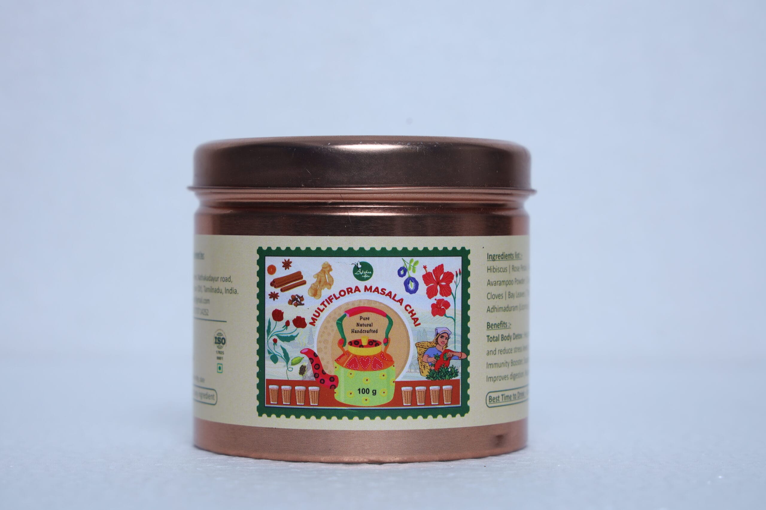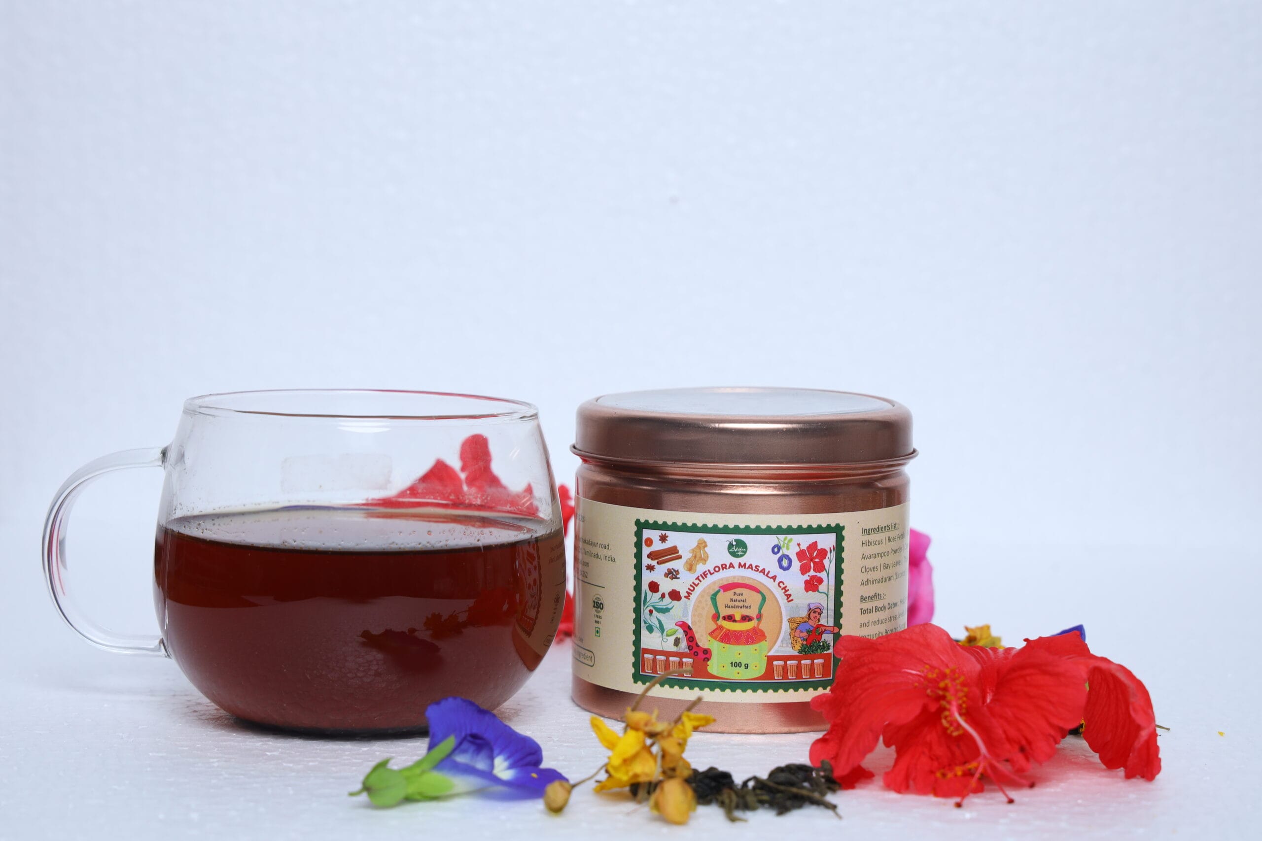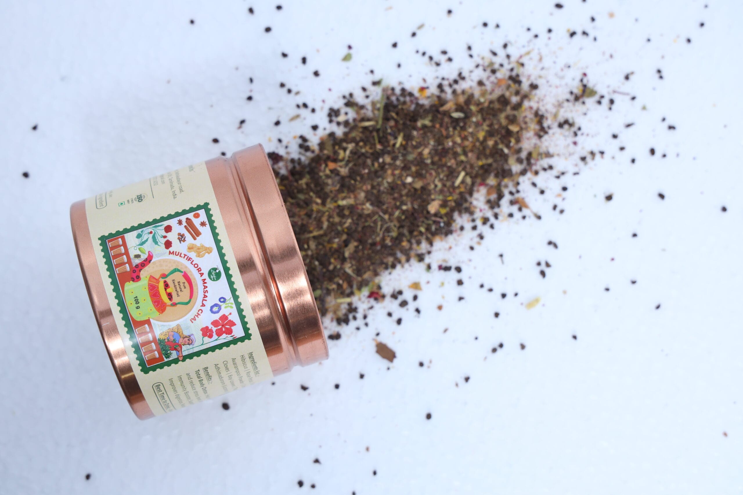 Multiflora Masala Chai is a rich and aromatic blend of premium tea leaves infused with traditional Indian spices. Carefully crafted to deliver a bold flavor and comforting warmth, this masala chai offers the perfect balance of taste and wellness in every cup.